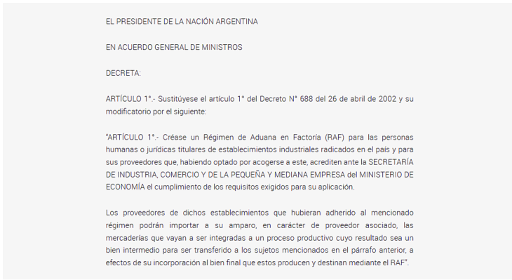 miércoles 22 de abril 2026.- El Gobierno de Javier Milei oficializó una medida que marca el principio del fin del subrégimen industrial de Tierra del Fuego. A través del Decreto 252/2026, la administración nacional extendió al resto del país beneficios fiscales y aduaneros que hasta ahora eran exclusivos de la provincia, eliminando así una ventaja clave para la producción fueguina.